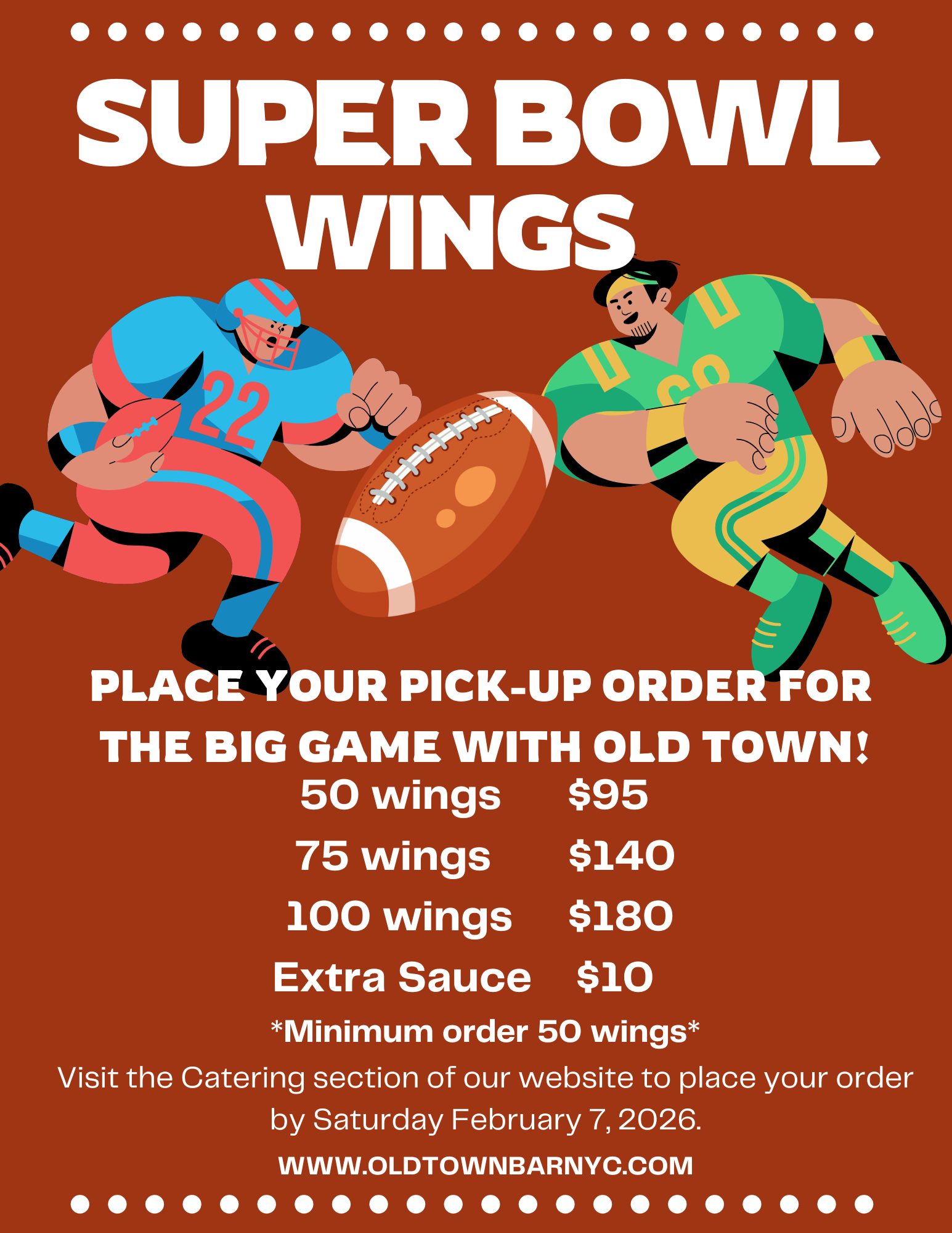 Minimum order is 50 wings. All orders must be received by Saturday February 7, 2026.
